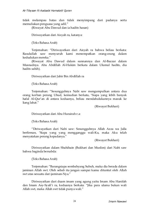 At-Tibyaan fii Aadaabi Hamalatil Quran - Imam Nawawipdf. Berikut link download terjemahan kitab At-Tibyan. Adab agama akhlak Al-Quran anak Aqidah biografi cinta Dakwah doa dzikir ekonomi feqih filsafat fiqih hadist Harun Yahya hati hikmah hukum ibadah Ibnu Qayyim Al.