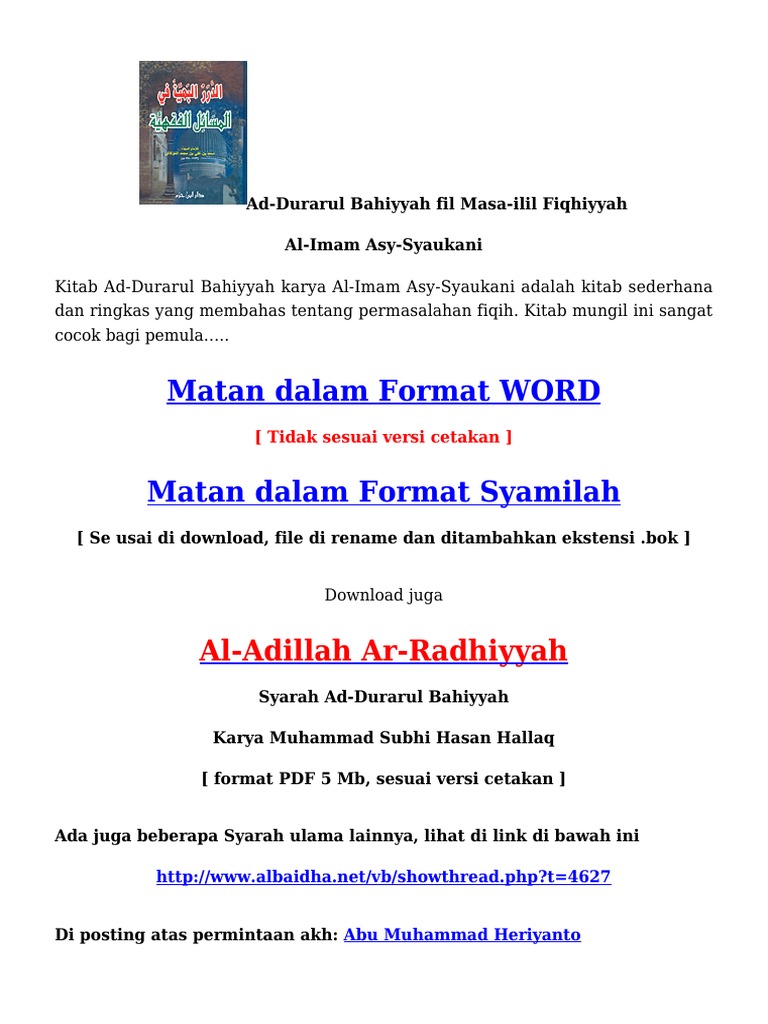 Kitab Durorul Bahiyah Pdf Archives Ahmad Alfajri