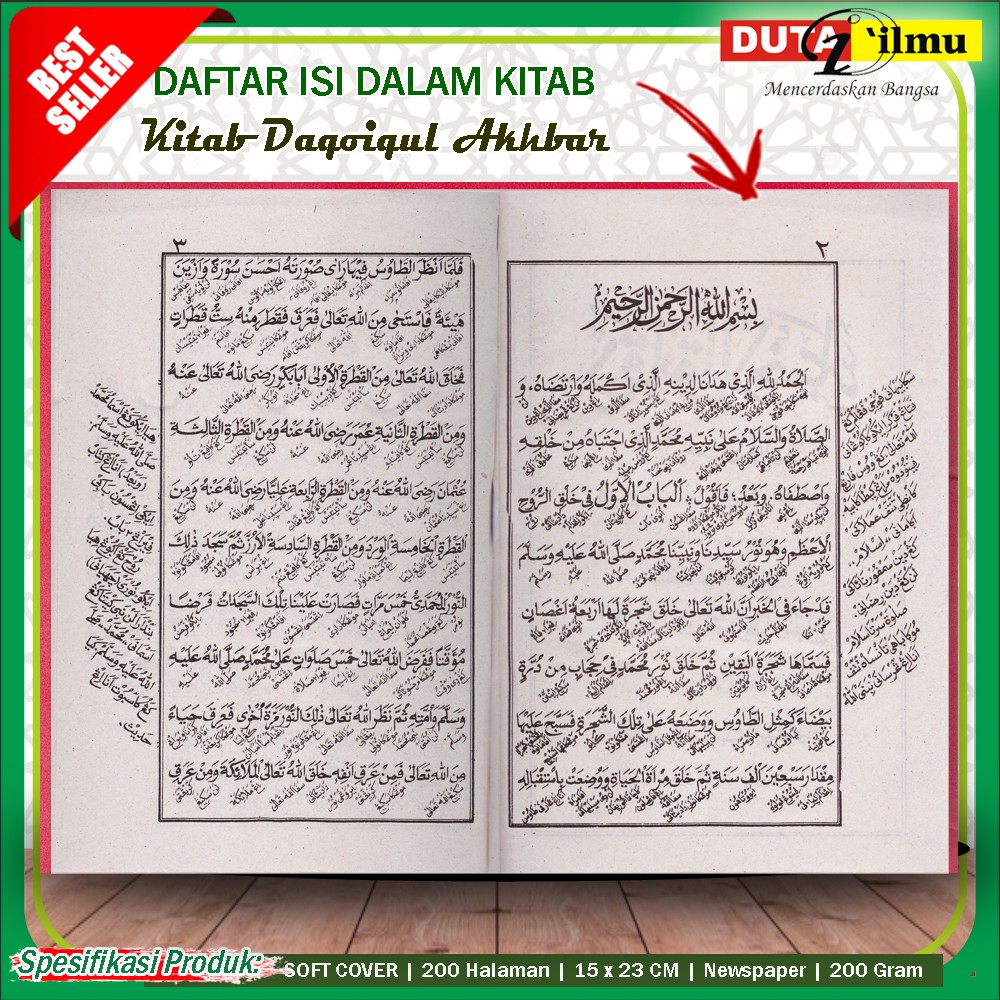 Kitab untuk orang-orang yang kurang bisa didalam membaca kitab versi aslinya arab. Kitab Daqaiq al-Akhbar menceritakan hal-hal ghaib yang tidak kasat mata yang harus diketahui oleh setiap muslim untuk mengokohkan keimanan mereka kepada hal-hal yang tidak terjangkau oleh panca indra bahkan tidak mampu dicapai oleh akal pikiran manusia yang memang sangat terbatas. Daqoiqul Akhbar Rp 13000 Kitab Terjemah Dari Bumi untuk Langit Rp 24000 Kitab Terjemah Fathul Muin Lengkap 1.