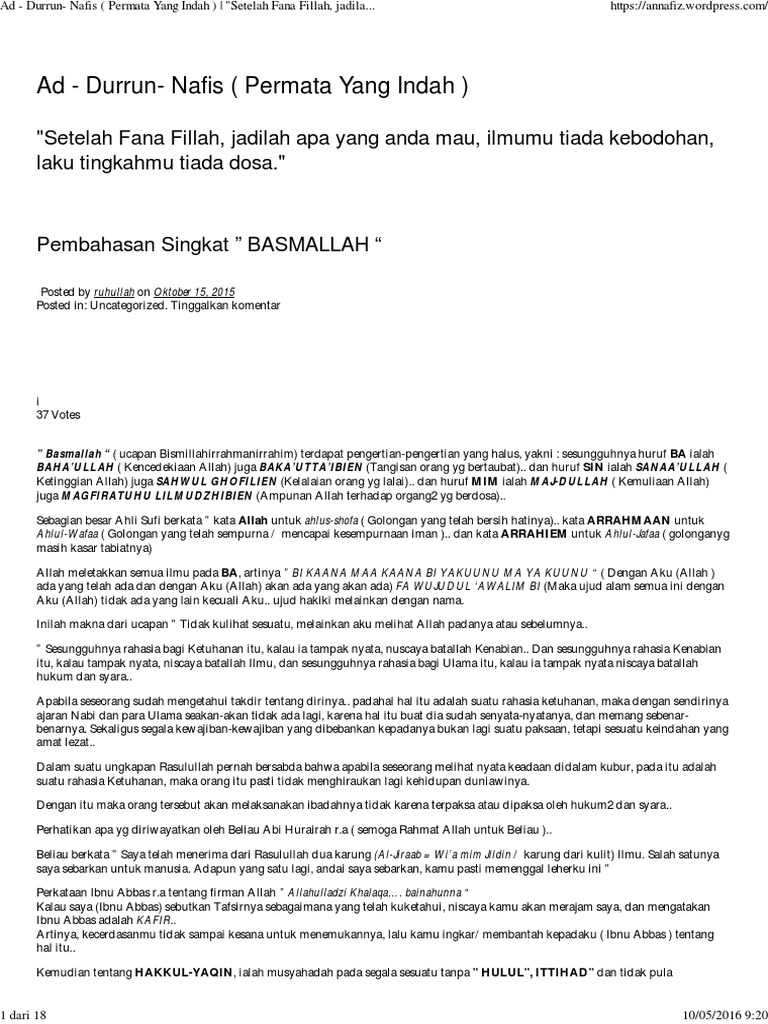 Durun nafis free download kitab durun. Kitab Ad-Durrun Nafis dalam bahasa Indonesia ini yang di-indonesiakan dari bahasa aslinya yaitu Bahasa. N Ilmu Ketuhanan Permata Yang Indah Ad-Durun.